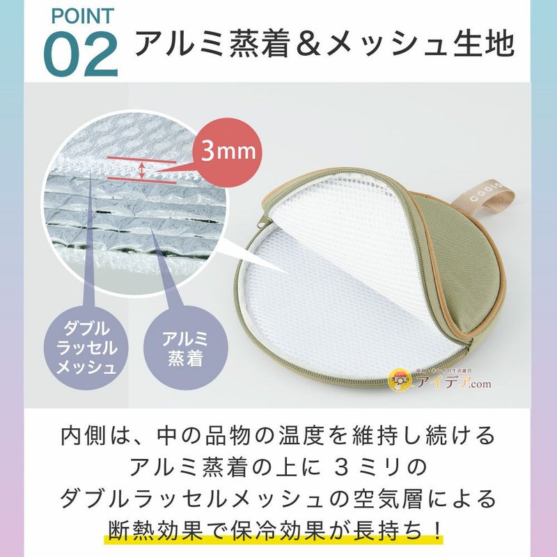 | ■材質 | 本体:〈表生地〉ポリエステル 〈内生地〉アルミ蒸着フィルム 保冷剤:水、CMC-Na | ||