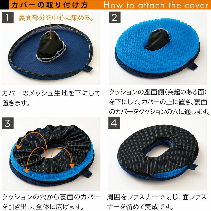 | ■使用上のご注意 | ●長くお使いいただくために、カバーを装着してご使用ください。●素材の特性上、本体クッションを直接置いた場合、設置面がシミになる恐れがあります。●本品のクッション材は素材の特性上、使用状況や経時変化により劣化します。●本体クッション材は弾力性のあるゲル素材を使用しております。平らな座面でご使用ください。座面が本品より小さいイスや座面に凹凸のあるイス、または沈みやすいイスなど、不安定な状態でのご使用はお避けください。●製造工程の都合上、本体ゲル素材に小さな凹凸、白い模様、気泡がある場合がございますが、品質には問題ありません。●過度の荷重や衝撃を加えたり、鋭利なものに接触すると破損する場合がありますのでお避けください。万一、本体クッション材が破損した場合はご使用をおやめください。●長時間、直射日光が当たる場所や、高温多湿の場所に放置しないでください。素材の特性上、変形する恐れがあります。●素材の特性上、まれに変色する恐れがありますが、ご使用上問題はありません。●カバー装着時はファスナーつまみ部を内側に収納してご使用ください。外に出ていると床やイスを傷つけることがあります。●本品はカバーのみ洗濯できますが、洗濯機の手洗いモードでは洗えません。また、本体クッション材は洗濯できませんのでご注意ください。●本体クッション材が汚れた場合は、水に濡らし固く絞った布で拭き取り、完全に乾かしてからご使用ください。●危険ですので本品の上に立ったり、飛び跳ねたりしないでください。又、お子さまが本品で遊ばないようご注意ください。転倒など思わぬ事故の原因となります。●使用中、使用後に異常を感じた場合は直ちにご使用をおやめください。●輸送途中で本体クッション材が変形している場合があります。形を整えてからご使用ください。●袋から出した時に臭いが気になる場合は日陰で風に十分さらしてからご使用ください。●包装用の袋で遊ばないでください。窒息など思わぬ事故の原因となります。●お子さまの手の届かない場所で保管してください。●カバー装着時、ご使用を繰り返す内にクッション材がずれた場合は、カバーを軽く振って形を整えてからご使用ください。●カバーは色落ちする場合がありますので、他のものと一緒に洗わないでください。また、洗濯により収縮する恐れがありますので形を整え陰干ししてください。●カバーは素材の特性上、摩擦により毛玉が生じる場合があります。その際は無理に引っ張らずにハサミなどで取り除いてください。●火気に近づけないでください。●本来の用途以外には使用しないでください。●使用感には個人差があります。 | ||