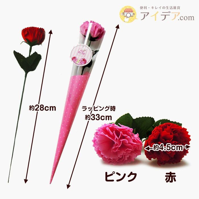 | ■製品サイズ(約) | カーネーション:直径約4.5cm 長さ:約28cm | ||
