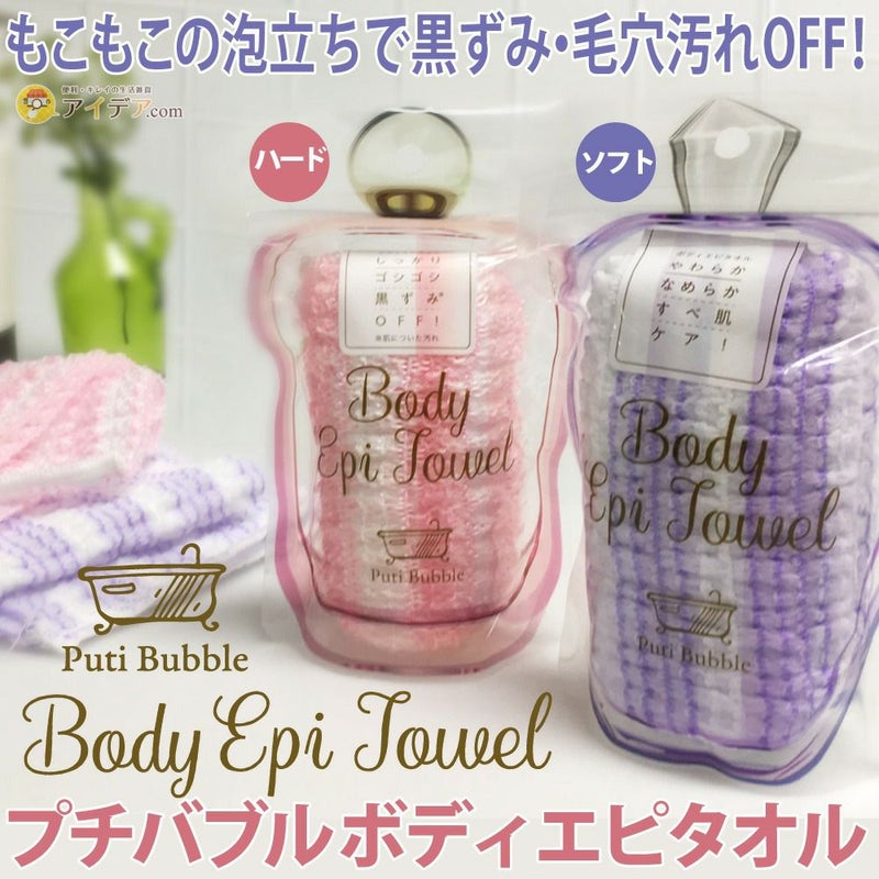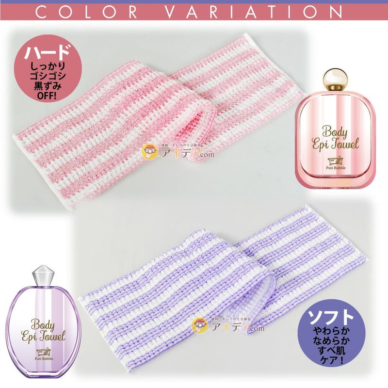 フレグランスボトルに入ったボディエピタオル!? プチバブル ボディエピタオル ![]() お風呂で使うボディエピタオルをどこでも持ち運べるコンパクトサイズに。伸ばして使うと背中までしっかり洗えます!畳むと小さくコンパクトになるので、ジムやスパ、旅行にもオススメ!パッケージのジップ袋に入れて持ち運びにも便利です。 ハード・ソフトの2種類があるので、お肌の状況に合わせてお選び頂けます。夏に向けて背中のお手入れ! ![]() ![]() ![]() ![]() ![]() ![]() ![]() <ハード>しっかり ゴシゴシ 黒ずみOFF!しっかり固めのハードタイプ。もこもこの泡が立ち、黒ずみをピーリングします。 <ソフト>やわらか なめらか すべ肌ケア やわらかく、ふんわりしたソフトタイプ。クリーミーな泡が立ち、毛穴汚れを絡め取ります。 普段お使いのボディソープ・石けんを一緒にご使用いただけます♪ |