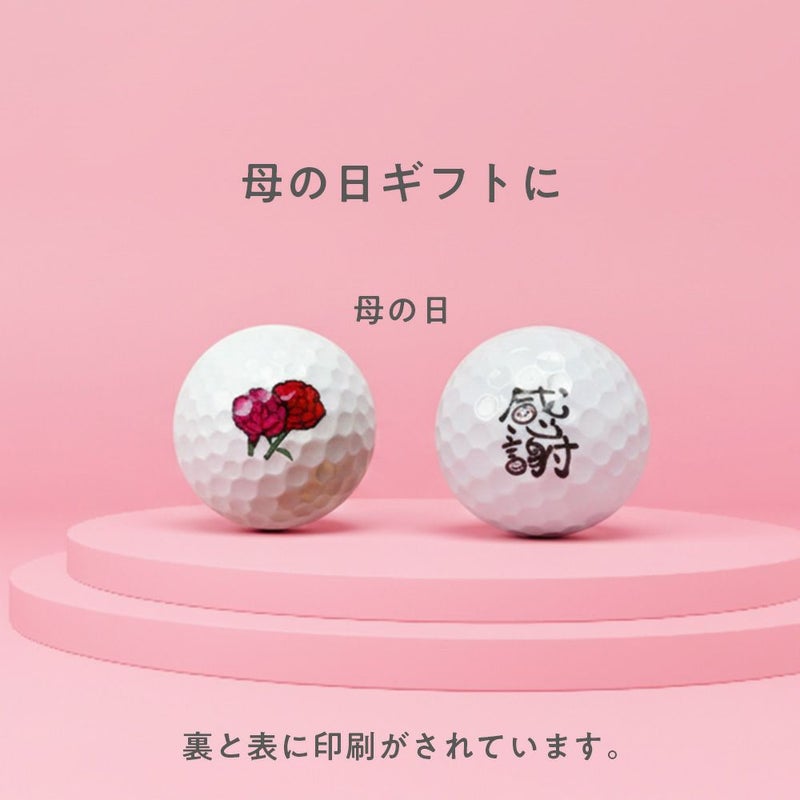 | ■商品特徴 | 還暦や父の日、バレンタインデー、母の日、誕生日などのお祝いのメッセージやイラストの入ったゴルフボールです。記念品やプレゼントにぴったり。プレイにお使い頂けるボールです。ゴルフグローブのお仕立券とセットでプレゼントするのもおすすめです。(別売) | ||