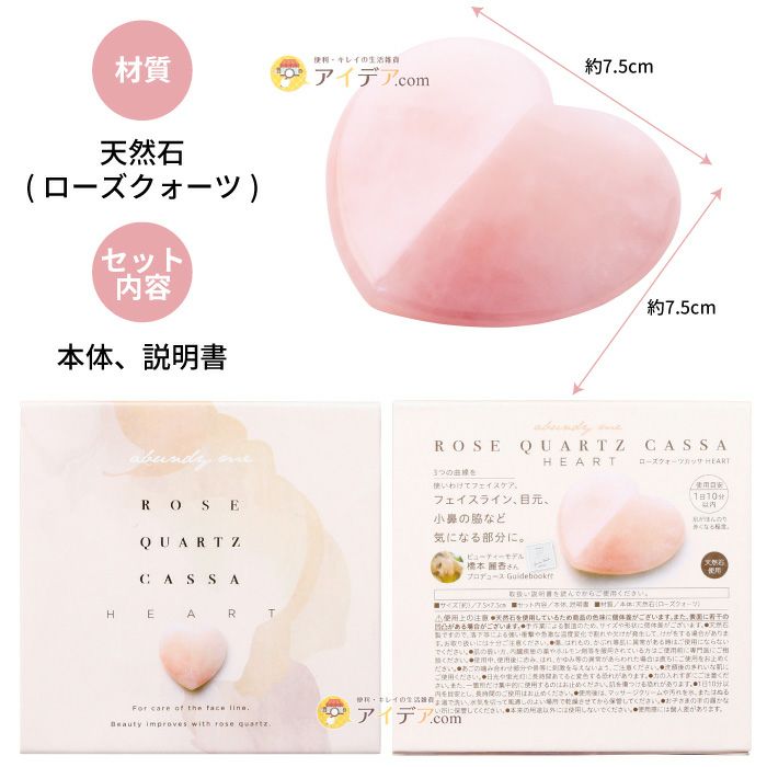 天然石のローズクォーツアイテムにハート型が仲間入り。ハートのもつ3つの曲線が、フェイスライン・目元・小鼻の脇など気になる部分にしっかりフィットします!