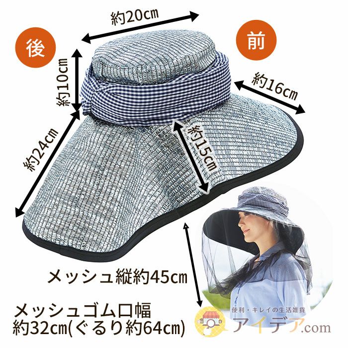 | ■製品サイズ | つばの長さ(約):16cm 、後ろの垂れ部分:24cm | ||