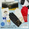 | ■商品特徴 | クリスタルギフトお仕立セット:天然シープの革にフッ素加工を施した革でグリップ部分はあてをして補強したオーダーグローブがお作りいただけます。 グローブのお色目はホワイト、ブラック、レッド、選択可。名前も金糸でお入れします。 |