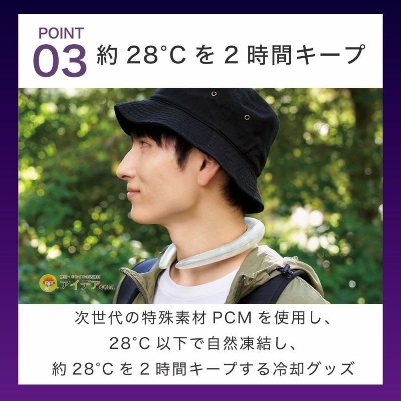| ■使用上のご注意 | ●本製品は保冷剤ではありません。●50℃以上の場所や湿気の多い場所などに放置したり、50℃以上のお湯に入れたりしないでください。品質・性能が低下する可能性があります。●液体⇔固体を繰り返すため、気泡や凹みなどが現れる場合がございますが、使用上の問題はございません。●着用時に締め付けを感じる場合は、固体の状態で先端を少し広げてから着用ください。●長期間の冷凍庫保管は本体の劣化の恐れがありますのでおやめください。●廃棄の際は各自治体の区分に従ってください。万が一、液漏れ等で排水口に流れてしまった場合は大量のお湯を排水口に流してください。●製品を無理に引っ張ったり、過度な荷重をかけたりしないでください。破損する恐れがあります。●破損、変形した場合は、直ちに使用を中止してください。●鋭利な物に触れないように気をつけてください。●万一、内容物が目や皮膚に付着した場合は大量の水で洗い流してください。また、飲み込んでしまった場合は無理に吐き出さずに医師の診断を受けてください。●本品着用時に息苦しいなどの違和感を覚えた場合は直ちに使用を中止してください。また、就寝時のご使用はおやめください。●汚れが付着した場合は、水で洗い流してください。●高温多湿の場所を避け、冷暗所に保管してください。●使用環境または保管環境によってはうまく機能しない場合があります。●お子様の手の届かない所に保管してください。●本来の用途以外には使用しないでください。●使用感には個人差があります。●火気厳禁。 | ||