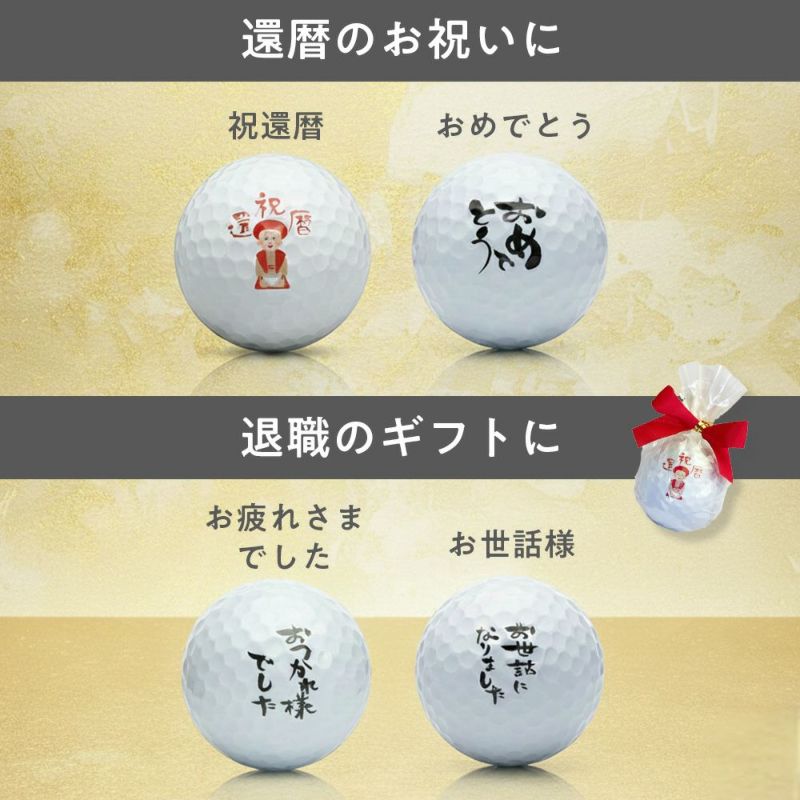 還暦や敬老の日、父の日といった大切な節目に最適な、お祝い専用のゴルフボールギフトです。