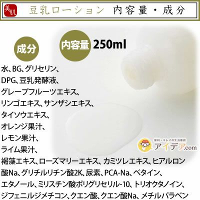 | 保湿成分配合、しっとりした感触でお肌をうるおすローション! 豆乳ローション