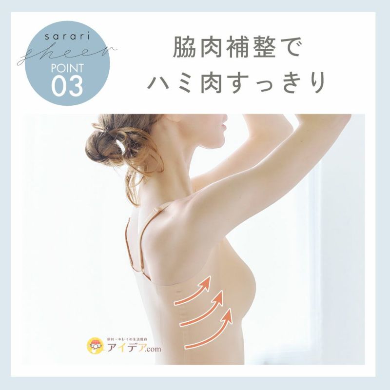 | 機能性 | くびれ 背中 脇肉 ワキ肉 ウエスト 補正 シームレス シアー 立体モールドカップ 極薄 |