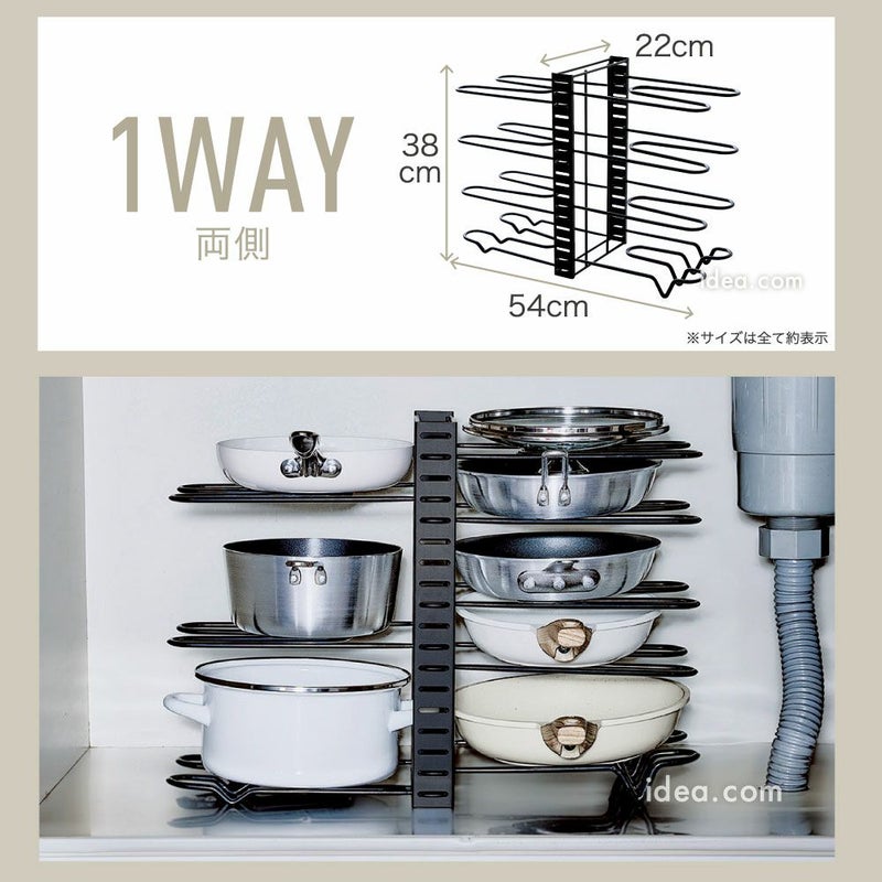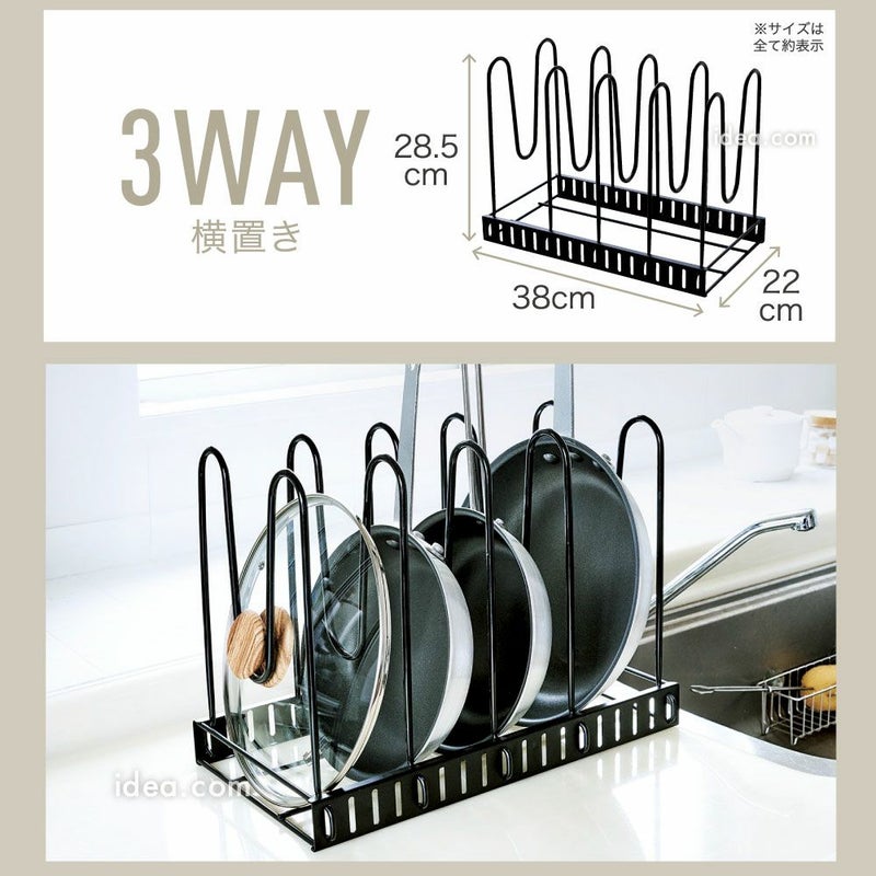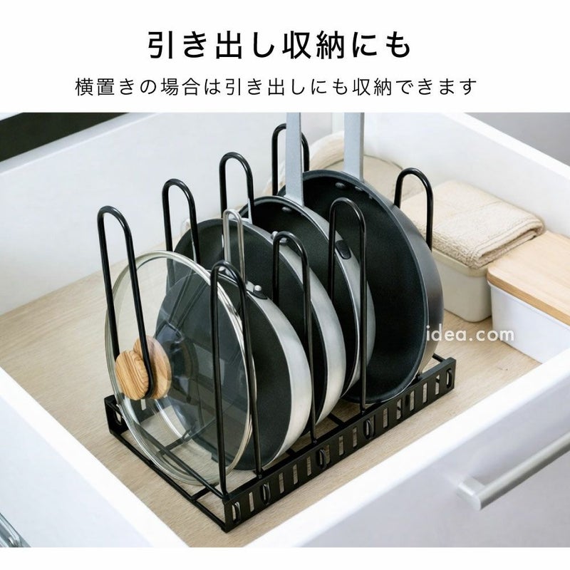 | 機能性 | すべり止め加工 3WAY仕様 仕切り幅調整可能 立てる収納 横置き対応 引き出し対応 フライパン収納 鍋収納 フタ収納 傷防止 安定設計 工具不要 簡単組立 省スペース 収納力アップ 転倒防止 取り出しやすい 可動仕切り 多サイズ対応 キッチン整理 |
