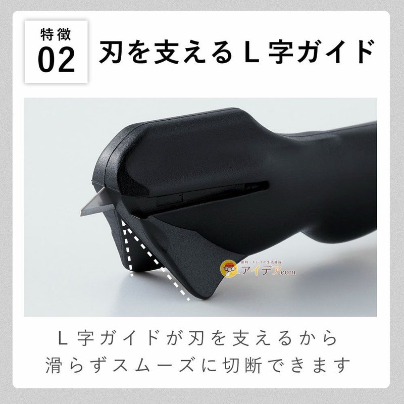 | ■使用上のご注意 | ●破損やケガの原因となりますので、無理に切断することはお避けください。●刃先は非常に切れやすくなっておりますので、直接刃に触れないようご注意ください。●使用後は必ず汚れや水分を拭き取り、通気性の良い場所で保管してください。汚れや水分が残っていると、さびや変色などの原因となります。また拭き取る際は、刃でケガをしないよう十分ご注意ください。●本品を水まわりや、湿気の多い所や屋外に放置しないでください。●刃は消耗品です。永久的に使えるものではありませんのでご了承ください。●刃先が欠けるなど変形・破損した場合は使用しないでください。●使用しない時は、必ずキャップをつけて保管し、お子さまの手の届かない所に保管してください。●本来の用途以外には使用しないでください。 ●火気厳禁。 | ||