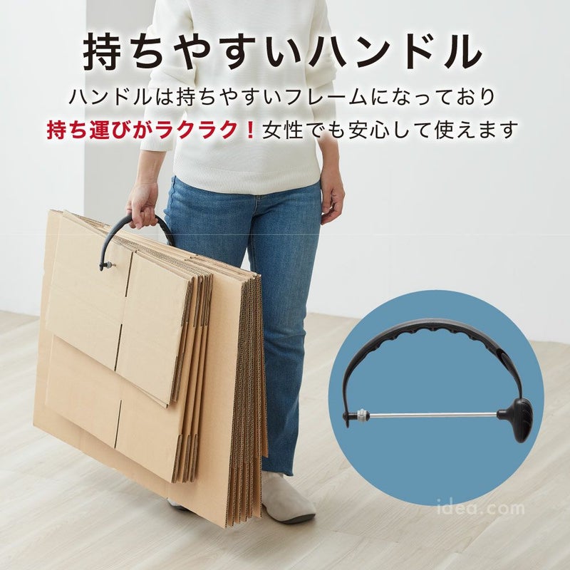 段ボールの整理・運搬・処分がもっとスマートに。これ一つで、面倒だった段ボール処理がスピーディかつ安全になります。