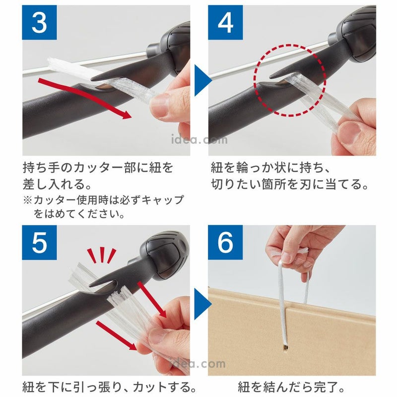 ハンドルは手にフィットする持ちやすい形状で、玄関からゴミ出し場所までの移動もラクラク。さらにビッグサイズだけにカッターがつきました!持ち手部分に内蔵されているので、まとめた段ボールを紐で結ぶ前に、その場でスムーズにカット可能です。