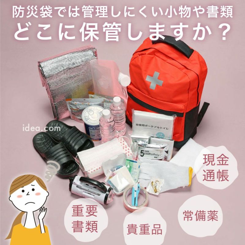管理しにくいパーソナルな小物や書類をサッと織って持ち出せる男女兼用の防災ベスト