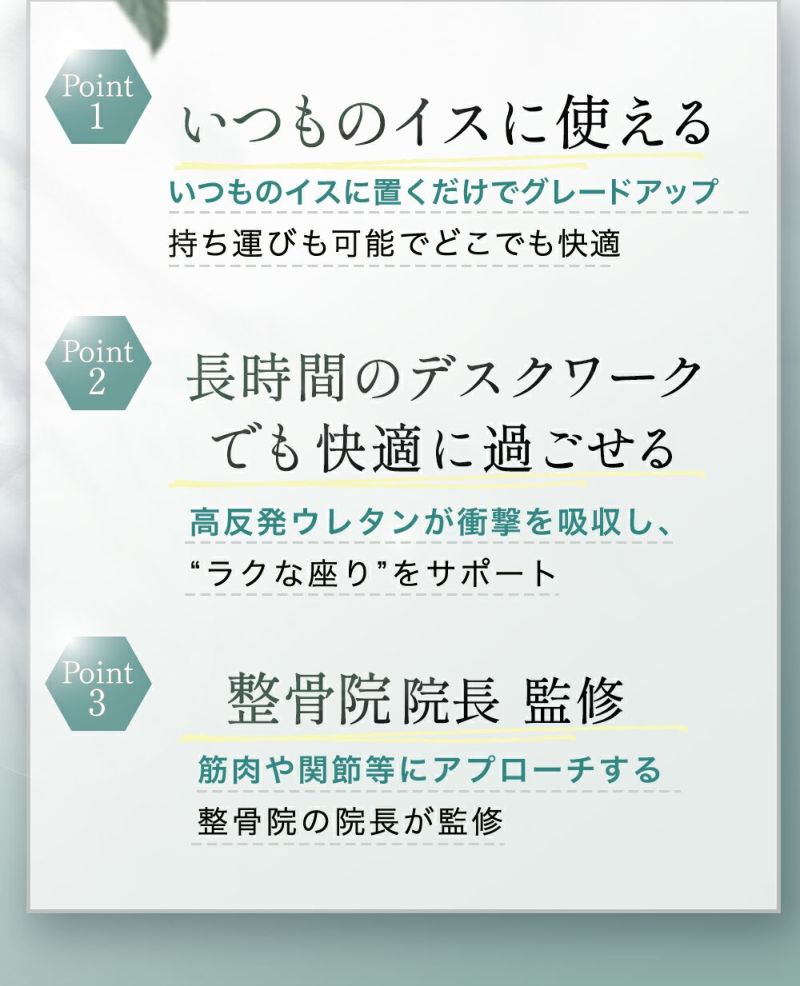 | 腰周りをフォローする 立体構造 背骨 のびのび腰痛対策クッション ![]() ![]() ![]() ![]() ![]() ![]() ![]() ![]() ![]() ![]() ![]() ![]() ![]() ![]() ![]() 衝撃軽減×高反発仙骨を支え、背骨を立てる。 |