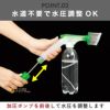 | ■使用上のご注意 | ●ペットボトルは500mL以上でチューブがペットボトルの底まで届く深さのものをご使用ください。口の形状によっては取り付けられないものがありますので、その際は別のペットボトルでお試しください。(ペットボトルの取り付け口径の目安:約直径27mm)●1L以上のペットボトルには使用できない場合があります。●ペットボトルにキズなどがないことを確認してからご使用ください。●レバー・安全弁を上に引っ張ると破損します。ご注意ください。●使用しているうちにペットボトルをねじ込む穴のパッキンが外れたり、安全弁のパッキンがずれる場合があります。そのまま使用すると空気もれなどの原因となりますので、元の位置に戻してください。●お子さまが本品で遊ばないようご注意ください。●洗剤などを入れて使用する際は、洗剤の注意事項をよくご確認ください。●使用後はペットボトルを外し、本体・チューブ・ブラシをきれいに洗ってから十分に乾燥させて保管してください。濡れたまま放置するとカビや破損の原因となります。●水圧により多少水漏れする場合があります。●火気に近づけないでください。●お子さまの手の届かない所に保管してください。●本来の用途以外には使用しないでください。 | ||