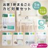 セット内容は、お風呂の天井に貼るだけでカビの繁殖を抑える「お風呂のカビきれい」、エアコンの吸気口に装着するだけでカビや臭いをブロックする「エアコンのカビきれい」、クローゼットや押入れの湿気臭を防ぐ「クローゼットのカビきれい」、シンク下や床下収納のジメジメ対策にぴったりな「シンク下のカビきれい」、そしてゴミ箱のイヤな臭いを根本から分解する「ゴミ箱の臭いに」。