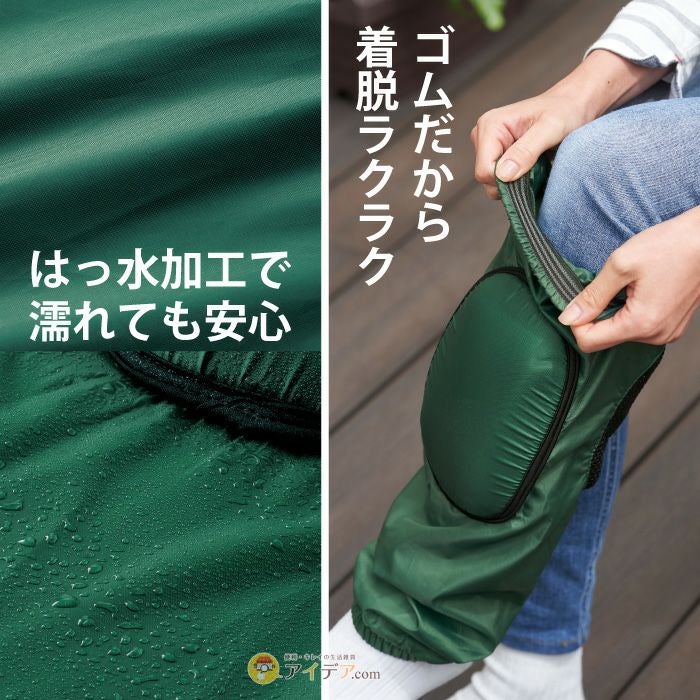 | ■使用上のご注意 | ●ズレ落ち防止ゴムバンドを上部にして着用してください。●本品は、はっ水加工を施していますが使用をくり返すことにより効果が低下します。●はっ水加工がうすれてきた場合は市販のはっ水スプレーなどをかけてください。なお市販のはっ水スプレーをご使用の場合、シミなどが発生する恐れがありますので、目立たないところでお試しの上、ご使用ください。●洗濯により色落ちする場合がありますので他のものと一緒に洗わないでください。●本品は洗濯により収縮する恐れがありますので形を整え陰干ししてください。●洗濯により本品が色あせたり、変色する場合があります。●乾いた状態、または汗や水などにより湿った状態で強く擦ると他のものに色移りする恐れがあります。万一衣服などに色移りした場合は早めに洗濯してください。●火気に近づけないでください。●本来の用途以外には使用しないでください。 | ||