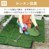 地面に置くだけで雑草の成長を抑制。面倒な除草作業や薬剤散布は不要で、誰でもすぐに雑草対策が可能です。表面はリアルな人工芝仕様なので、殺風景だった庭・玄関まわり・ベランダ・駐車場の隙間が、明るく清潔感のある空間へと変わります。