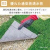 マット同士を並べるだけで設置でき、ハサミで簡単にカットも可能。敷きたい場所に合わせて自由にレイアウトできます。防草シート一体型構造により、雑草の侵入を防ぎながらも優れた透水性・通気性を確保。雨水がたまりにくく、ぬかるみやムレを防ぎ、オールシーズン快適に使用できます。