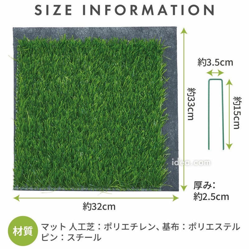 ■材質 <マット>人工芝:ポリエチレン、基布:ポリエステル <ピン>スチール