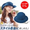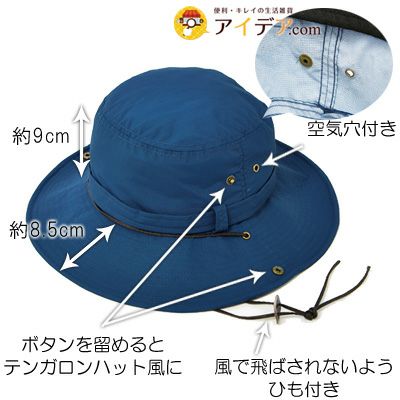それに、ボタンをとめるとテンガロンハット風になって2Way楽しめるUV帽子です。