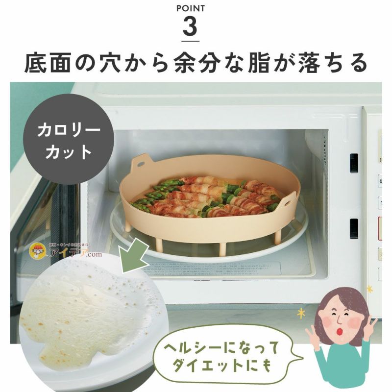 | ■使用上のご注意 | ●最初に使用するときは食器用洗剤等で洗い、水気を切って乾燥させてからご使用ください。●使い始めはシリコーンゴム特有の臭いを感じる場合があります。●本品が破損している、または使用中に破損した場合はただちに使用を中止してください。●直接火にかけたり、オーブントースターやグリルで使用しないでください。●耐熱・耐冷温度の範囲内でご使用ください。●加熱調理後は本体が熱くなっておりますので、やけどに注意してください。●本品に食材のにおいがついたり色移り、変色する場合があります。●使用後または長時間使用しない時はよくすすぎ洗いし、水気を切ってよく乾かしてから保管してください。●タワシや研磨剤入りのクレンザー、塩素系漂白剤などは使用しないでください。●必要以上に強く引っ張ると破損する恐れがあります。また、鋭利なものなどで突き刺さないでください。●火気厳禁。 | ||
