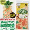 | ■使用上のご注意 | ●野菜は裸のまま、本品に入れてお使いください。●ニオイ移りの原因となりますので、ニオイの強い野菜を一緒に入れる事はお避けください。●本品は野菜・果物専用です。肉・魚には使用しないでください。●野菜・果物の種類、温度、湿度などの条件により、効果には違いがあります。●袋内部の空気をなるべく抜いてから口を閉じてください。●野菜を入れた後は、冷蔵庫に入れ、立てて保管してください。●電子レンジは使用しないでください。●再利用する場合は、水洗いをして汚れを取り、充分に乾燥させてからお使いください。●米ぬか成分は天然のものですので、袋により多少の色の変化がありますが、製品には問題ありません。●米ぬか成分の特性上、袋に若干のニオイがあります。●本品から野菜を取り出した際、ニオイが気になる場合は、一度水洗いをしてからお召し上がりください。●本品に野菜を入れ過ぎると破れる恐れがあります。●鋭利なものなどで突き刺さないでください。●お子さまの手の届く所に保管しないでください。●火気に近づけないでください。●本来の用途以外には使用しないでください。 | ||
