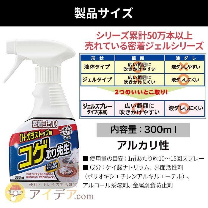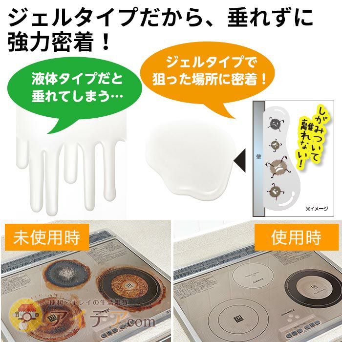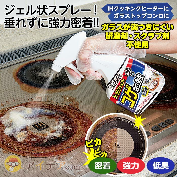 | ジェルタイプだから液ダレしにくく密着!研磨剤などが不使用だから傷つきにくい 密着ジェル!コゲ取り先生 IH・ガラストップ用 ![]() IHやガラストップコンロは毎日お料理をしていると、汚れてきますよね。