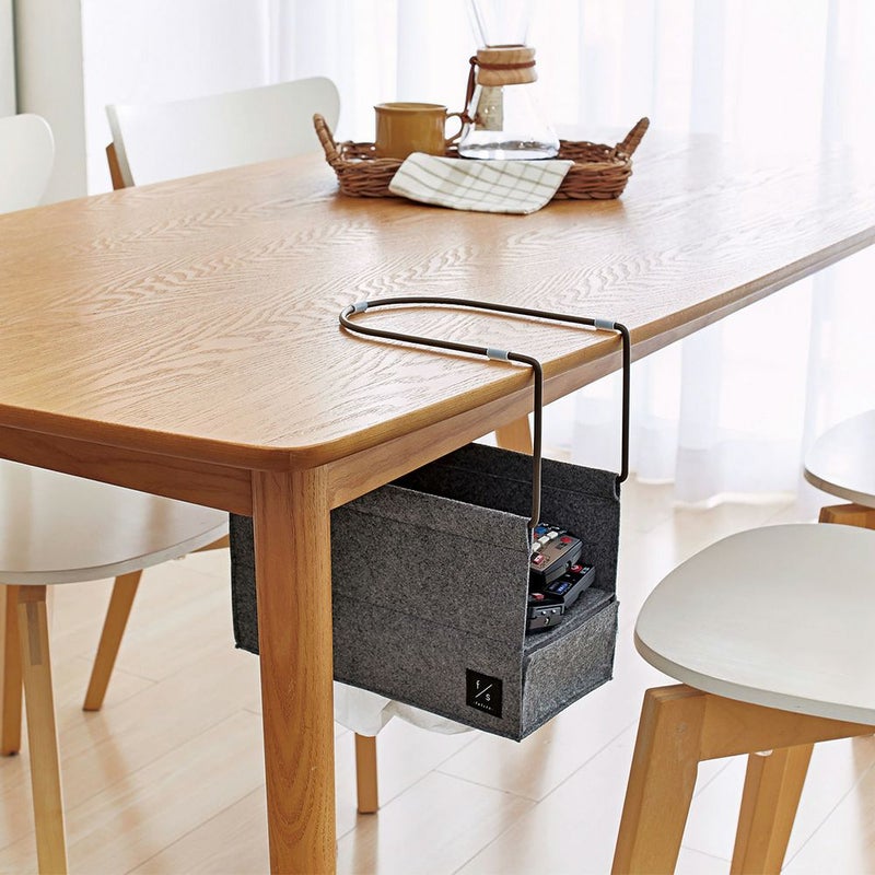 | ■使用上のご注意 | ●平らな場所に設置してください。●設置の際はテーブルに何も置いていないことを確認してから取り付けてください。●天板の厚みによって、本品に収納できる物の高さが変わりますのでご注意ください。●設置の際に、手をはさまないようご注意ください。●物を入れた状態での本品の移動はお避けください。●生地が破れる原因となりますので、鋭利なものを入れないでください。●勢いよく物を出し入れすると本品がずれる場合がありますのでご注意ください。●破損やケガの原因となりますので、過度の荷重や衝撃を与えないでください。●濡れたものを入れないでください。●本品は洗濯できません。汚れが生じた場合は、水に濡らして固く絞った布などで拭き取ってください。●本来の用途以外には使用しないでください。●火気に近づけないでください。 | ||