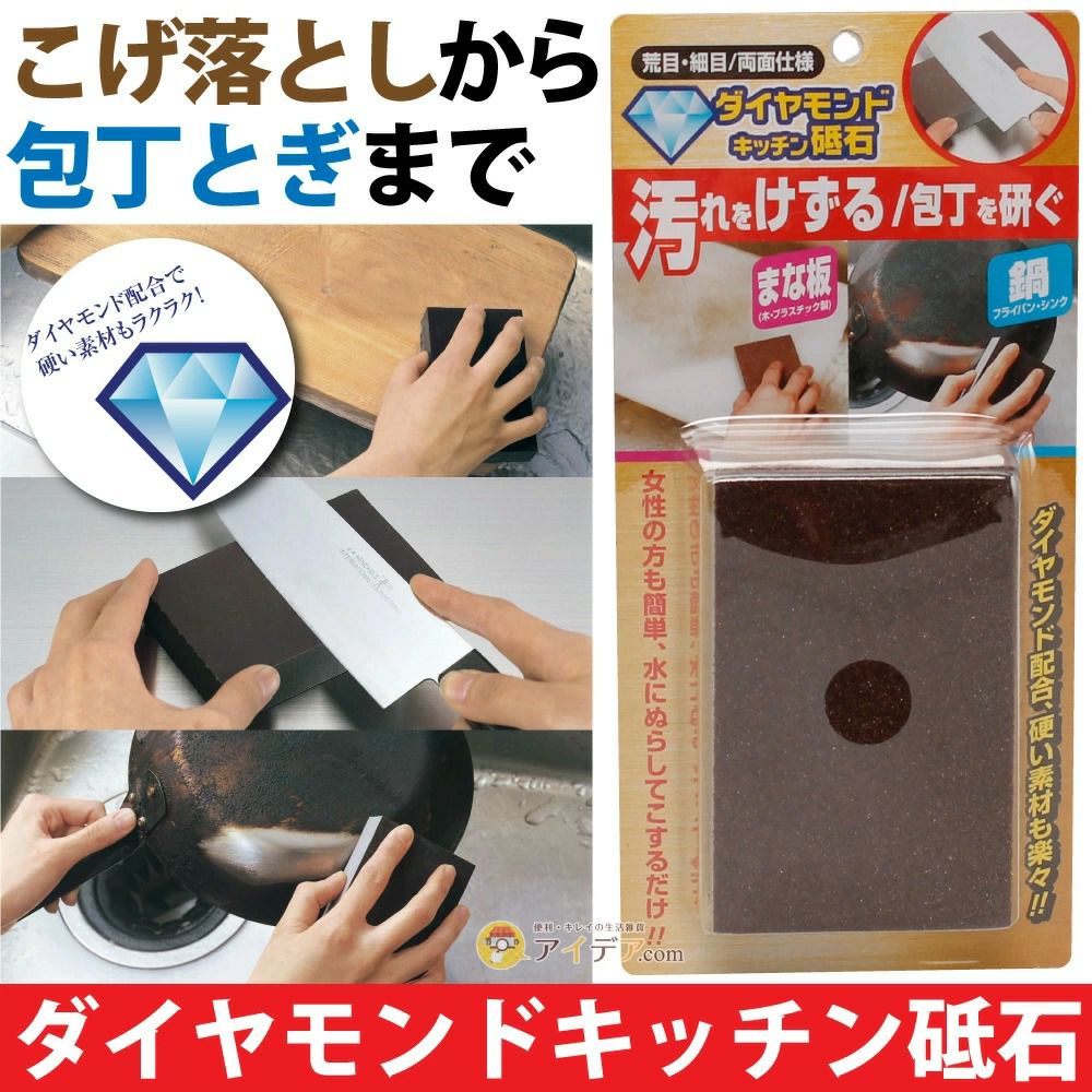 鍋やフライパンのこげ落としに 木製・プラスチック製のまな板の汚れ、黒ずみに ダイヤモンドキッチン砥石 ![]() すぐに購入したい方はこちら キッチン回り、お手入れできてますか?コーヒー1杯分のお値段の【ダイヤモンドキッチン砥石】は、フライパン・まな板・包丁・鍋など、すべてお手入れできます♪ 水にぬらして、こするだけ!ダイヤモンド配合で硬い素材も楽々研磨。値段以上の効果を実感してみてくださいね! ![]() ![]() ![]() ![]() ![]() ![]() ![]() ■木製・プラスチック製のまな板の汚れ、黒ずみに ■鍋やフライパンのこげ落としに ■ステンレス製・スチール製の包丁研ぎに ■シンクの黒ずみや、こびりついた汚れにも最適! 【ダイヤモンドキッチン砥石】でキッチンアイテムはいつもピカピカですよ♪ |