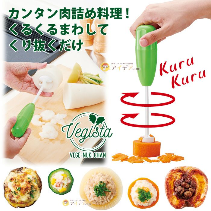 | 野菜の底を残したままくり抜ける 映える肉詰め料理 ベジヌキちゃん ![]() おうち需要が高まり、料理の時間をもっと効率的に、そしてもっと可愛く楽しみたい方にもオススメのキッチングッズ♪「ベジヌキちゃん」はくるくるまわすだけで、野菜の底を残したままくり抜けるので、映える肉詰め料理を簡単に作れるアイテムとなっております。 きゅうりやトマト、リンゴのくり抜きにも。アジャスターは4本付なので、野菜のサイズに合わせてお使いいただけますよ! ![]() ![]() ![]() ![]() ![]() ![]() ![]() ![]() ホームパーティーでのおもてなし料理に、お子様とのクッキングに。いつものお料理をさらに幅広く、そして楽しく簡単にお使いいただけるキッチングッズです。 ![]() |