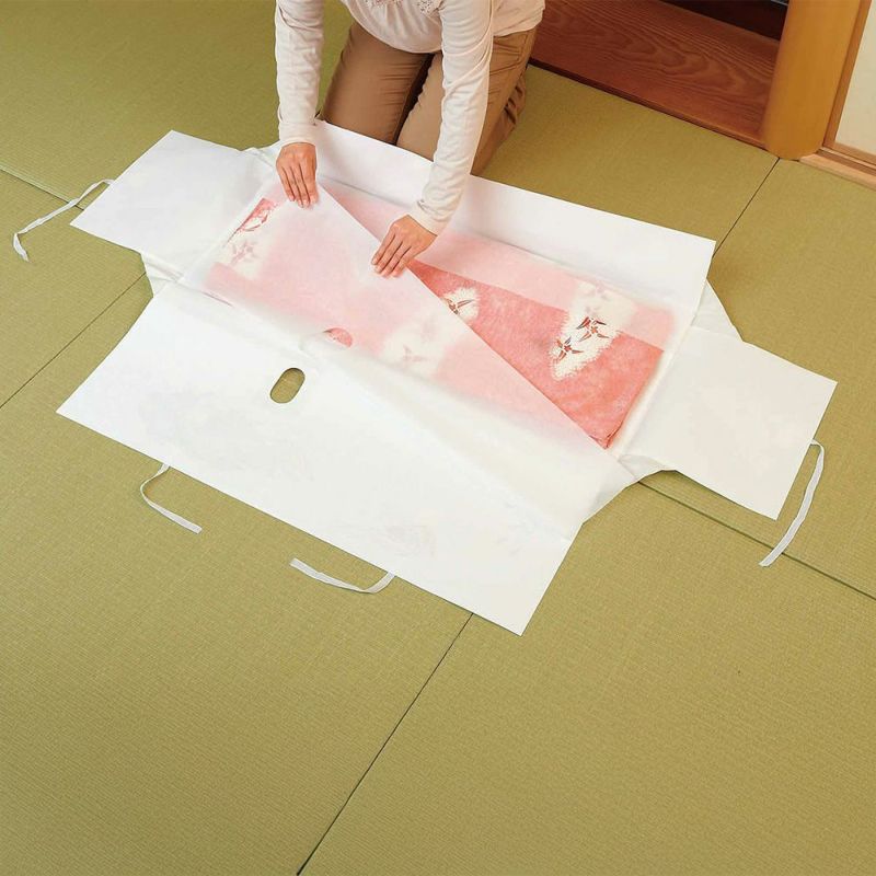 | ■使用上のご注意 | ●変色の恐れがある為、市販の防虫剤を使用する時はたとう紙の中に入れないでください。また、防虫剤の注意事項をよく読んでからご使用ください。●湿った状態の着物を本品にしまい保管すると、カビが生える恐れがあります。着物が湿っていないかを必ず確認し、乾燥させてから収納してください。●着物は平らなところでしわをのばしてたたみ、凹凸のない水平なところに収納してください。●強く引っ張ると破れる恐れがあります。●移動させる時は結びひもを持たずに、本体を下から持って水平に保ち移動させてください。●洗濯はできません。●直射日光のあたる場所や高温多湿になる場所で保管すると劣化する恐れがありますのでご注意ください。●火気に近づけないでください。 | ||