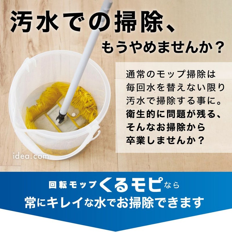床掃除 フローリング 掃除用品 時短掃除 家事ラク 電気不要 モップ脱水 節水モップ 角掃除 四角モップ マイクロファイバー 大容量タンク 掃除グッズ くるモピ