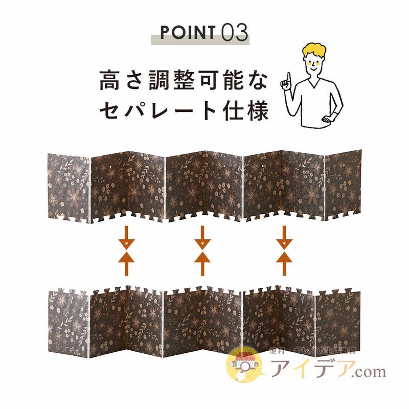 | ■使用上のご注意 | ●材質の特性上、接地面・ジョイント部に若干のすき間ができる場合があります。●ファンヒーターやストーブなどに近づけないでください。●過度に強く引っ張ったり鋭利なものなどで突いたりしないでください。●窓際で使用する場合、結露が付き本品や床が濡れてしまう場合があります。●本品は非常に軽い素材を使用しているため、窓を開けると風によって倒れる場合があります。事前に風のあたらない場所に片付けてから窓を開けるようにしてください。●材質の特性上、時間の経過とともに劣化、変色する場合があります。●日光や蛍光灯に長時間あてると変色する恐れがあります。●色や柄の出方は商品によって異なります。●お子さまが本品で遊ばないようご注意ください。●使用感には個人差があります。●包装用の袋で遊ばないでください。窒息など思わぬ事故の原因となります。●火気厳禁。 | ||