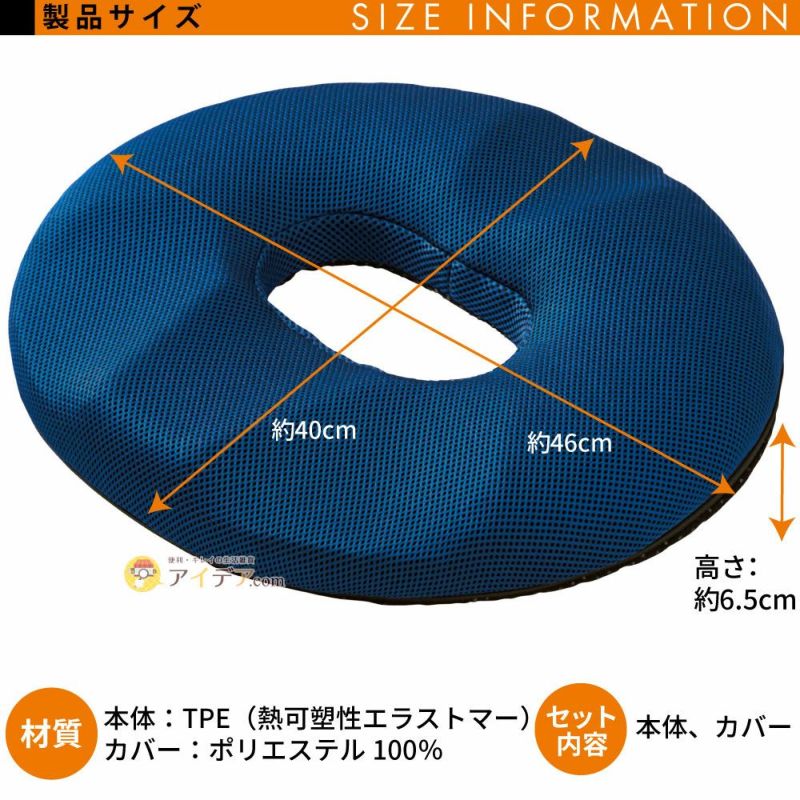 ■使用上のご注意 ●長くお使いいただくために、カバーを装着してご使用ください。●素材の特性上、本体クッションを直接置いた場合、設置面がシミになる恐れがあります。●本品のクッション材は素材の特性上、使用状況や経時変化により劣化します。●本体クッション材は弾力性のあるゲル素材を使用しております。平らな座面でご使用ください。座面が本品より小さいイスや座面に凹凸のあるイス、または沈みやすいイスなど、不安定な状態でのご使用はお避けください。●製造工程の都合上、本体ゲル素材に小さな凹凸、白い模様、気泡がある場合がございますが、品質には問題ありません。●過度の荷重や衝撃を加えたり、鋭利なものに接触すると破損する場合がありますのでお避けください。万一、本体クッション材が破損した場合はご使用をおやめください。●長時間、直射日光が当たる場所や、高温多湿の場所に放置しないでください。素材の特性上、変形する恐れがあります。●素材の特性上、まれに変色する恐れがありますが、ご使用上問題はありません。●カバー装着時はファスナーつまみ部を内側に収納してご使用ください。外に出ていると床やイスを傷つけることがあります。●本品はカバーのみ洗濯できますが、洗濯機の手洗いモードでは洗えません。また、本体クッション材は洗濯できませんのでご注意ください。●本体クッション材が汚れた場合は、水に濡らし固く絞った布で拭き取り、完全に乾かしてからご使用ください。●危険ですので本品の上に立ったり、飛び跳ねたりしないでください。又、お子さまが本品で遊ばないようご注意ください。転倒など思わぬ事故の原因となります。●使用中、使用後に異常を感じた場合は直ちにご使用をおやめください。●輸送途中で本体クッション材が変形している場合があります。形を整えてからご使用ください。●袋から出した時に臭いが気になる場合は日陰で風に十分さらしてからご使用ください。●包装用の袋で遊ばないでください。窒息など思わぬ事故の原因となります。●お子さまの手の届かない場所で保管してください。●カバー装着時、ご使用を繰り返す内にクッション材がずれた場合は、カバーを軽く振って形を整えてからご使用ください。●カバーは色落ちする場合がありますので、他のものと一緒に洗わないでください。また、洗濯により収縮する恐れがありますので形を整え陰干ししてください。●カバーは素材の特性上、摩擦により毛玉が生じる場合があります。その際は無理に引っ張らずにハサミなどで取り除いてください。●火気に近づけないでください。●本来の用途以外には使用しないでください。●使用感には個人差があります。