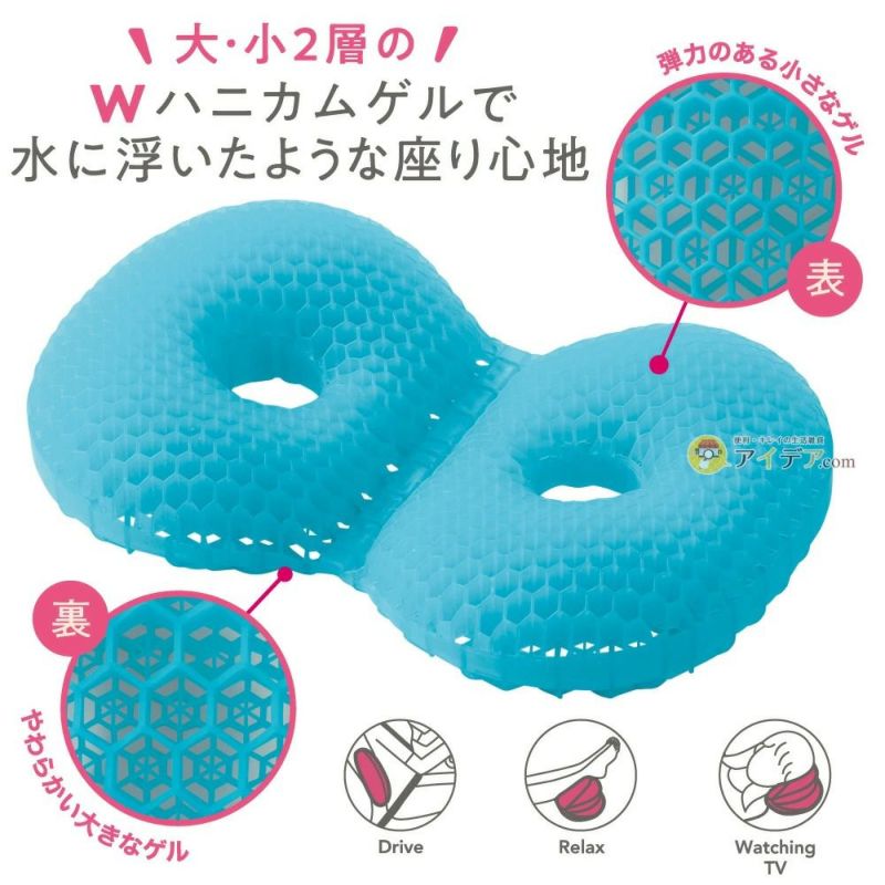 | 人気のベーグルクッションがGELクッションに進化 ! GELベーグルクッション ハネナイト ![]() 左右の傾斜でお尻を内側にキープする、発売以来、シリーズ累計出荷数1,000万個を誇る、 大人気のベーグルクッションがゲルタイプになって登場! 弾力のある小さなゲルと、やわらかい大きなゲルの2層のWハニカムゲルで水に浮いたような座り心地を実現しながら、美尻メイクが可能です! ![]() ![]() ![]() ![]() ![]() ![]() ![]() ![]() グレープは完売しました。何卒ご了承下さい。 ![]() 閉じて枕使いでリラックス。広げて座ると美尻に。 広げて閉じて、車やオフィス、自宅でもさまざまな場面でお使いいただけますよ! ![]() |