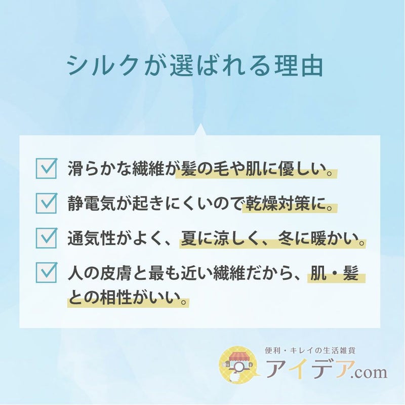 そんな睡眠中の髪の乱れや摩擦・乾燥のお悩みを解消!!かぶるだけで、やさしく包み込んで髪を守ります。