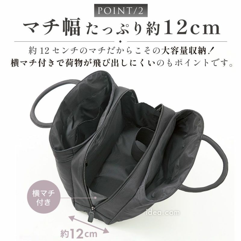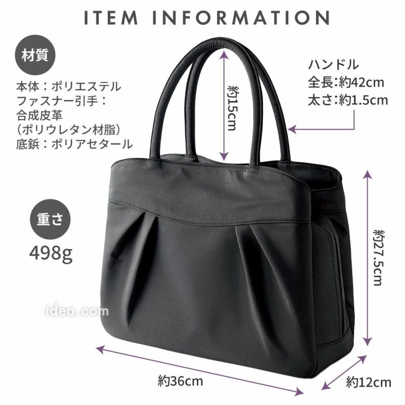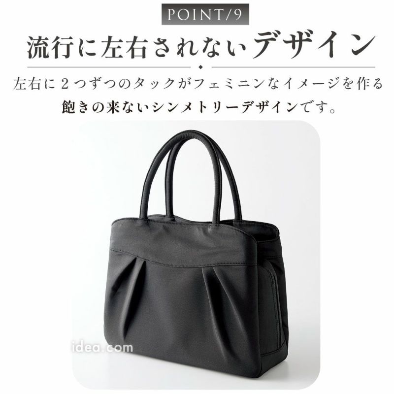 | 機能性 | 大容量 自立型 軽量設計 マチ広 約12cm A4収納可 ペットボトル収納 ループ付き 内ポケット オープンポケット 型崩れ防止 持ち手しっかり ファスナー開閉 ブラックフォーマル対応 高級感あり サブバッグ不要 収納力抜群 安定感あり 整理整頓しやすい |