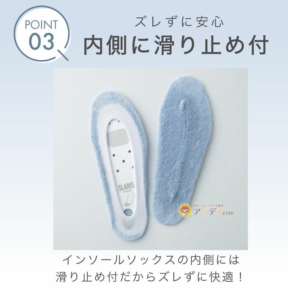 魔法びんのように暖かさをキープする極厚靴下。底面部分に滑り止め付で安心。