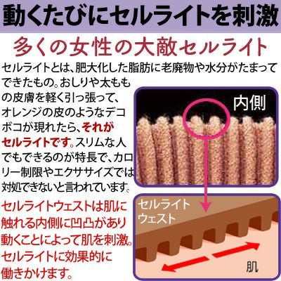 凸凹特殊編みが、動くたびにウエストラインのセルライトを刺激!ウエストすっきりスリムアップ!