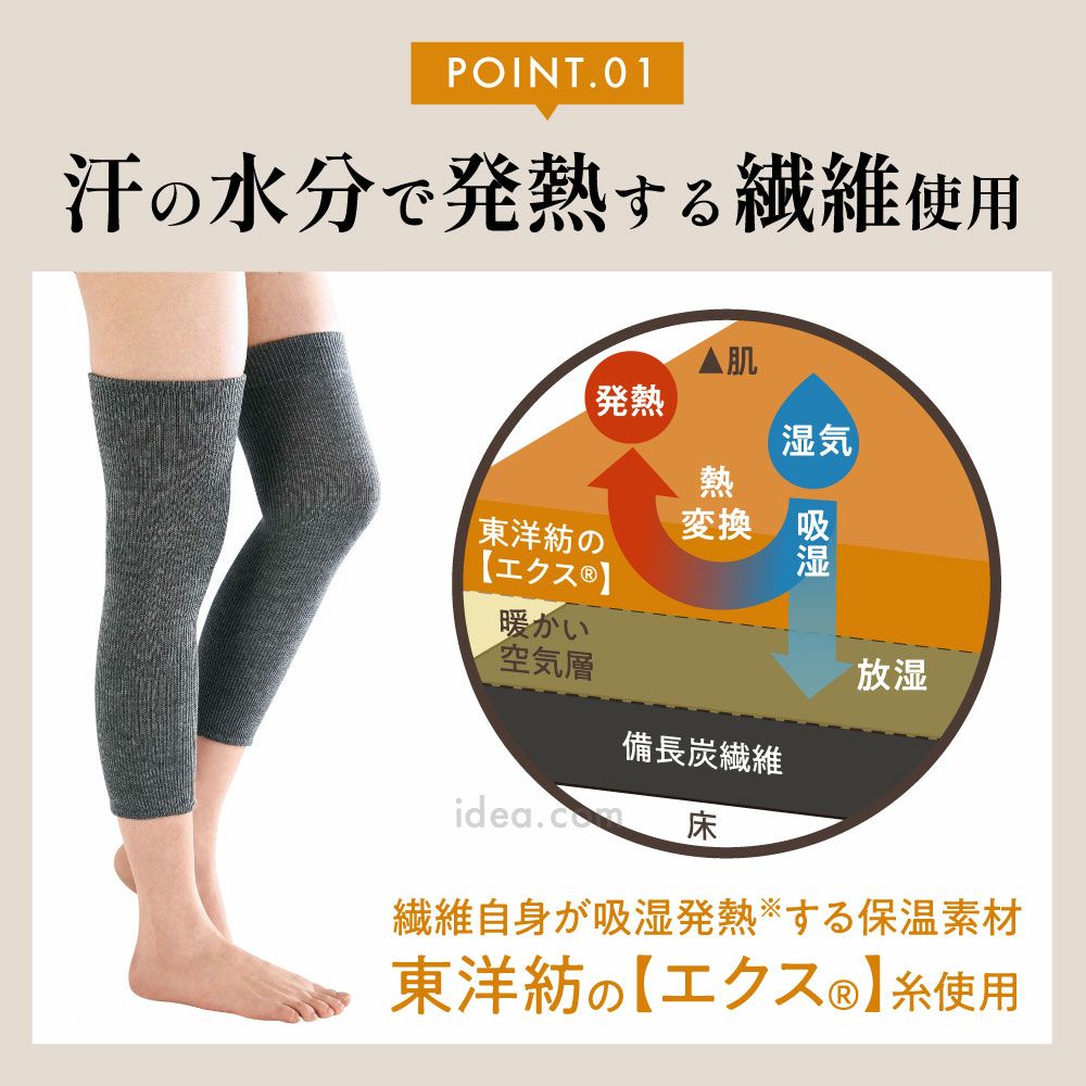 ひざをあたためてやさしく包む!汗の水分で発熱する繊維【エクス】使用