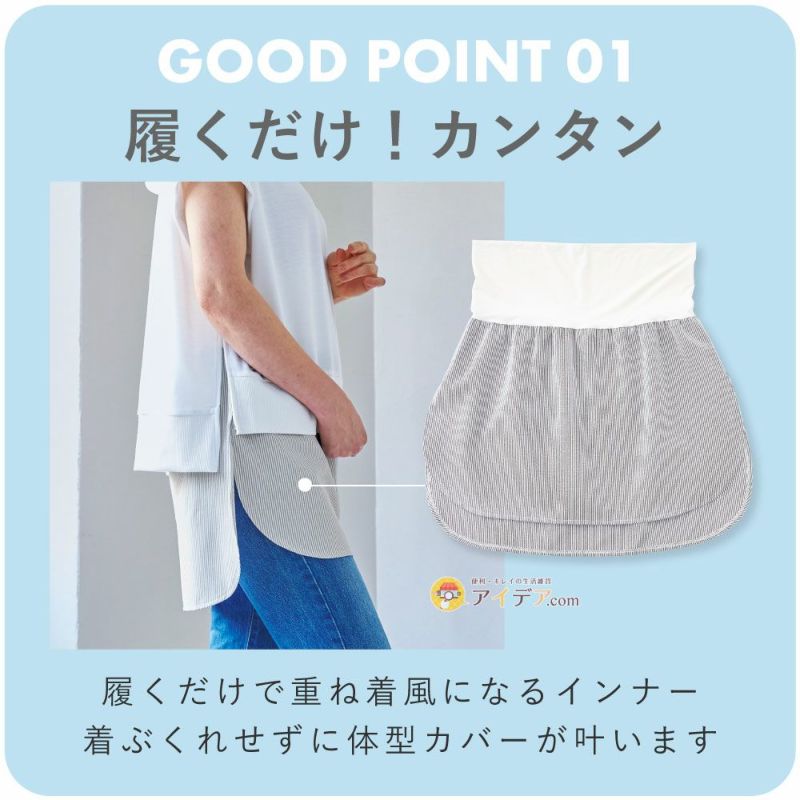 普段のスタイルでお腹やお尻を隠したい時に、さっと履くだけでレイヤードスタイルに変身!!