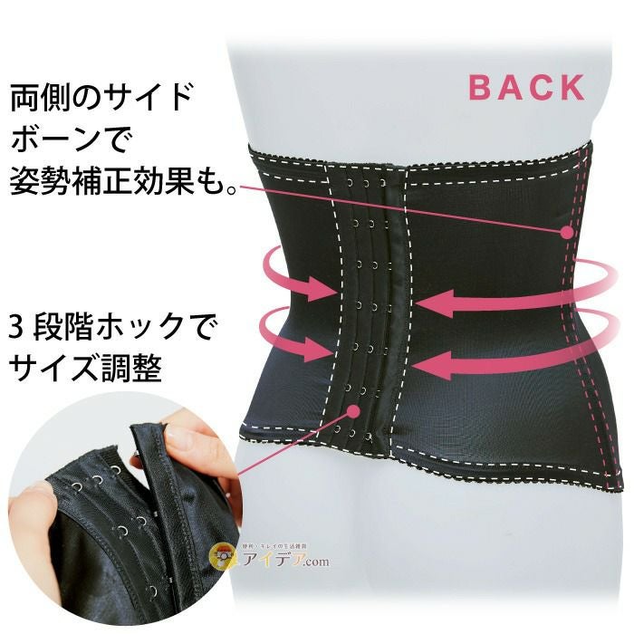 | 着るだけで!くびれをつくりながらダイエット! 食欲抑制!瞬間くびれコルセット ![]() 着用するだけで、瞬時にくびれをつくり、気になる下腹のぽっこりもカバー!ずんどうウエストも、ギュッ!とくびれる!ギュッ!と広がりやすい肋骨もおさえます♪ フロント部分のファスナーをあげるだけで、着脱ラクラク。上下部分にゴム使用でしっかりフィットして巻き上がりにくい。両側のサイドボーンで姿勢補正効果も期待できます!バック部分の3段階ホックで着用前にサイズ調整OK