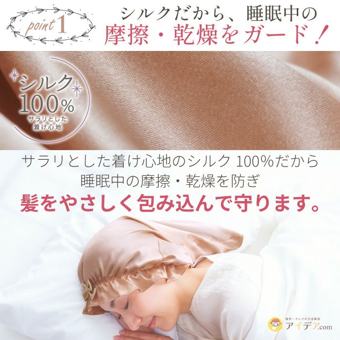 | 睡眠中の髪の乱れ 摩擦 乾燥に。シルクのナイトキャップで髪を優しく守る シルクシャイニーナイトキャップ for ロング ![]() ![]() ![]() ![]() ![]() ![]() ![]() ![]() ![]() ![]() ![]() ![]() 寝ている間に、髪が絡んだり、引っ張られたり、朝にはボサボサ…そんな睡眠中の髪の乱れや摩擦・乾燥に!シルクで包み込んで髪をやさしく守ります♪ こちらのロングタイプは全長約55cmで、長い髪の毛もすっぽり毛先までカバー!シルク100%のサラリとした着け心地。 ![]() |