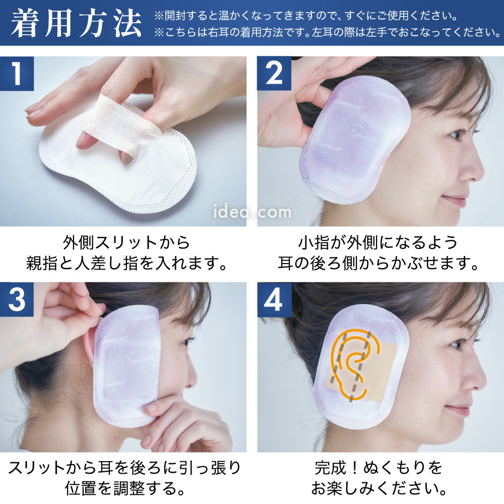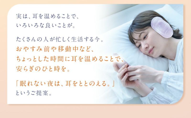 | ■使用上のご注意 | ●熱すぎると感じた場合、痛みや違和感など、身体に何らかの異常を感じた場合は、すぐに使用を中止してください。●耳に疾患のある方、耳周りにトラブルがある方は使用しないでください。●電子レンジで加熱しないでください。●お子さまや身体の不自由な方、認知症の方、自らの意思により本品を着脱できない方などには使用しないでください。●耳や耳の周りに湿疹、かぶれなどが現れた場合、赤み、かゆみなどの異常が続く場合は、その後の使用を中止し、医師に相談してください。●肌が温まると、一時的にかゆみを感じることがあります。●運転中は使用しないでください。●発熱が終了したものは再使用できません。●発火の可能性がある為、個包装がコンセントに触れないように注意してください。●個包装に傷がつくと、発熱しない場合があります。●お子さまの手の届かないところに保管してください。●直射日光や高温の場所、熱源の近く(暖房器具の上など)を避けて保管してください。●地域のルールに従い、冷めてから廃棄してください。●使用感には個人差があります。●火気厳禁。 | ||