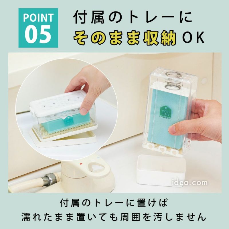 | これ1つでせっけん収納から衣類の汚れ落としまで! 泡立つ洗濯せっけんケース ![]() すぐに購入したい方はこちら ![]() ![]() ![]() ![]() ![]() ![]() ![]() ![]() ![]() ![]() ![]() ![]() ![]() コロコロ動かすだけでしっかり泡立つ! 毎日の“ちょい洗い”って、意外と手間がかかります。石けん置き場が濡れてぬるぬるしたり、使い終わっても乾きにくかったり、細かくなった石けんが結局ムダになったり…。そんな“あるあるストレス”を丸ごと解消してくれるのが、この泡立つ洗濯せっけんケース。 ケースに石けんを入れたまま、底面のブラシに“コロコロ”当てるだけで、驚くほどモコモコに泡立つ!バネ式のフタが石けんをしっかり押し当ててくれるから、小さくなった石けんも最後まで使い切れて経済的。ブラシは回転式で、力を入れなくても簡単に汚れにアプローチできます。 さらに、フタには通気口付き。使ったあとはケースごと乾きやすく、石けんのふやけ・溶けすぎを防止。付属のトレーに置けば、濡れたままでも周りが汚れないから、洗面所・ランドリー周りがいつも清潔にキープできるのが嬉しいポイント。 エリ・ソデの皮脂汚れ、子供の上履き、くつ下の泥汚れ、ユニフォームの黒ずみなど、「ちょっと洗いたい」をサッと完結。ケースに入れたまま使えるから、指が汚れない・泡立ていらず・時短の三拍子そろった優秀アイテム。 さらに、2つのブラシタイプに加え、デリケートな衣類にも使えるスリムローラータイプも新登場で、使いやすさもアップ!おしゃれ着やニット、ベビー服もOKになりました。家族用、バスルーム用、上履き洗い用など、用途に合わせて使い分けても◎。 “石けんの収納”と“部分洗い”をこれ1つで完了。 毎日の洗濯ルーティンが、もっとラクに、もっと清潔に進化! |