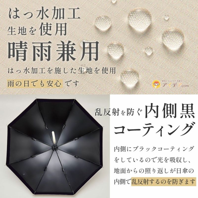 | 機能性 | 日傘 折りたたみ 完全遮光 放射冷却 体感-10℃以上の冷却効果 UVカット率約99.9% UPF50+ 遮光1級 近赤外線カット 遮熱 はっ水 グラスファイバー 軽量 黒コーティング 日焼け止め UV 紫外線 紫外線対策 日除け 涼しい |