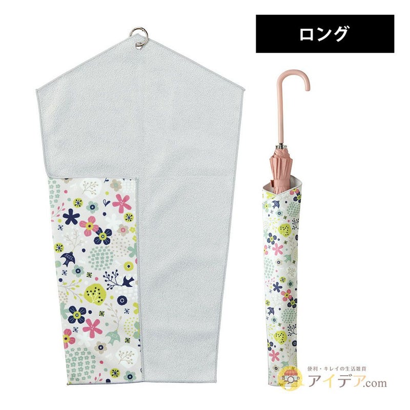 ![]() 生地同士がピタッ! とくっつく! 濡れた傘をそのまま収納! 裏側のポケットに傘を入れてくるくる包み込むだけ。持ち運びに便利な傘袋に。サイズや形を選ばずフィット! ![]() 濡れた傘をそのまま持ち歩くのではなく、スッと巻いて、ピタッととめてバッグにIN。 ![]() 濡れた傘をそのまま入れても安心。袋の内側には、吸水性に優れたマイクロファイバー素材を使用しているので、傘についた雨粒を素早く吸収します。 外側は水を通しにくい素材。バッグの中も安心![]() 外側には、水をしっかりはじく撥水加工が施された素材を採用。外からの水分はもちろん、内側の水分も外に漏れにくいため、バッグやお洋服が濡れる心配がありません。 カラビナ付きでバッグにぶらさげ![]() 取り付け用のカラビナ付きだから、バッグなどに取り付け可能。バッグの中が荷物でいっぱいの時も便利です。 ロングタイプなら長傘にも![]() ロングタイプなら長傘もスッポリ入るサイズ。