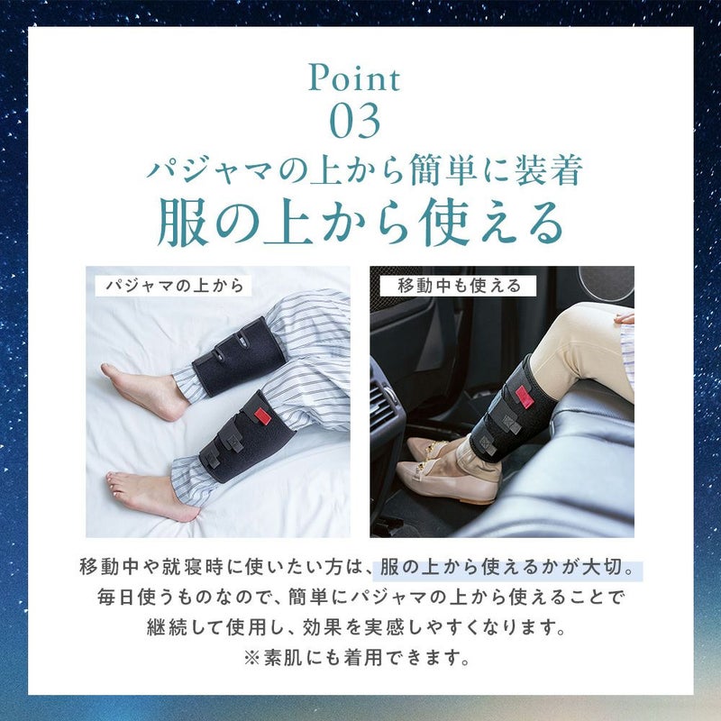 | 機能性 | 寝るとき ふくらはぎサポーター 寝る時 就寝時 むくみ 夜間頻尿 素肌で装着可能 服の上から装着可能 パジャマの上から ウェットスーツの生地 伸縮性 段階サポート |