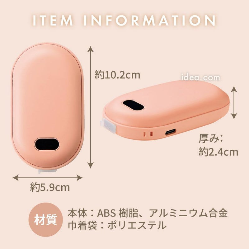 | 冷え知らずの冬を、いつでもどこでも。 3段階温度調節で、自分好みのあたたかさを。 USBカイロ ぬくもりスト ![]() ![]() ![]() ![]() ![]() ![]() ![]() ![]() ![]() オフィスでも外出先でも、ふんわり温感。可愛い見た目で頼れるUSB充電式カイロ。 冬の冷えた指先や手のひらを、ふんわり包み込む【USBカイロ ぬくもりスト】。 かわいいフォルムに、しっかりあたためる高性能を搭載。USB充電式だから、使い捨てカイロのようにゴミが出ず、何度でも繰り返し使えるサステナブル仕様です。約5時間の充電で、最長2時間の連続使用が可能。3段階温度調節(強・中・弱)で、気分や環境に合わせた最適なぬくもりを選べます。 さらに、約120gの軽量設計でポケットにもスッと入るコンパクトサイズ。通勤やオフィス、屋外イベントなど、持ち歩いてもストレスなし。付属の巾着袋は優しい肌触りで、本体を守りながら見た目も上品。 USB Type-Cケーブル付きで、スマートに充電可能。ギフトにもぴったりな可愛さと機能性を両立しました。寒さ対策はもちろん、冬の外出をもっと快適に、もっとスタイリッシュに。あなたの“手のひらの相棒”として、この冬、いつでもそばにぬくもりを。 |